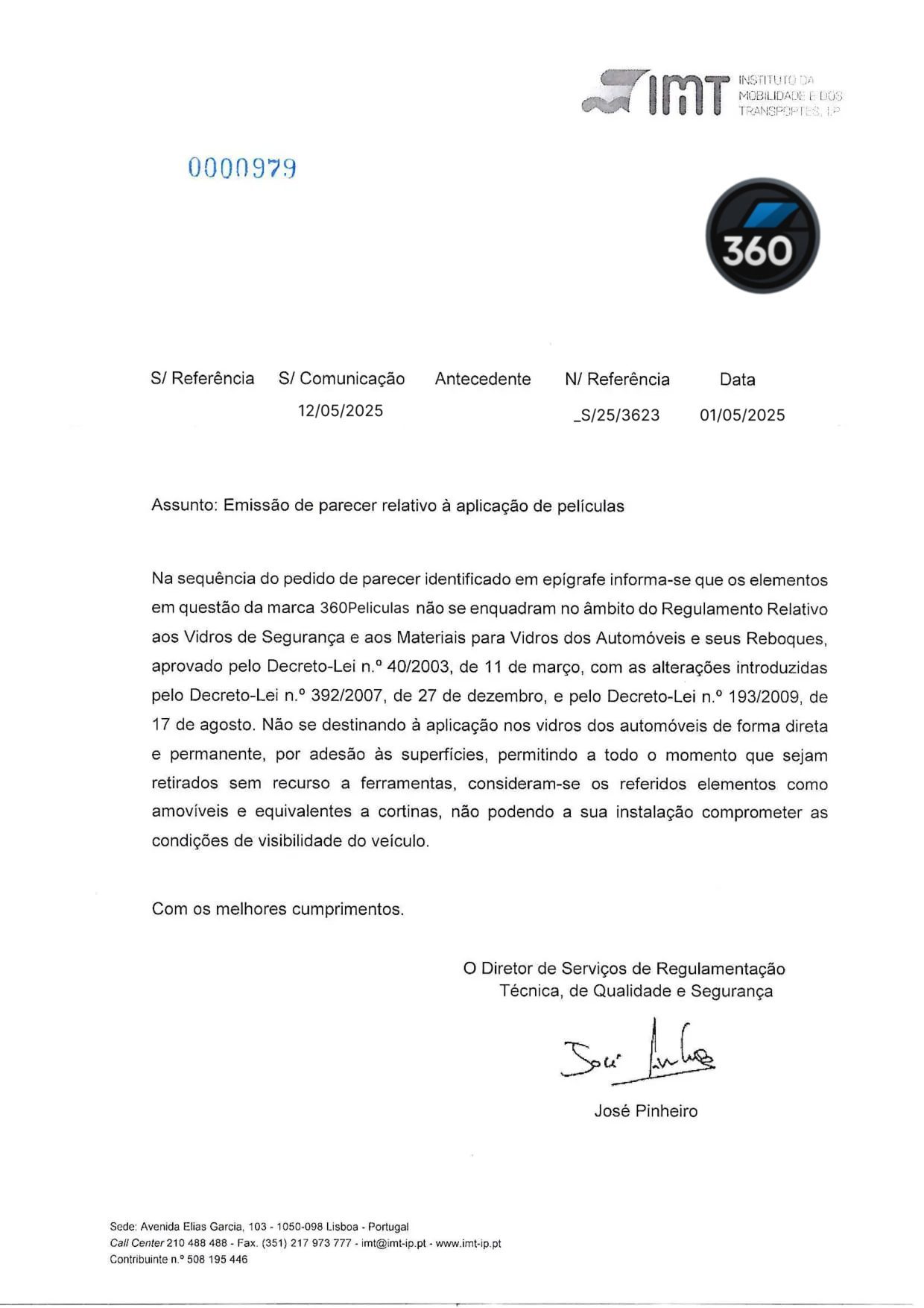 ATENÇÃO: É proibido circular na via pública com películas nos vidros frontais.